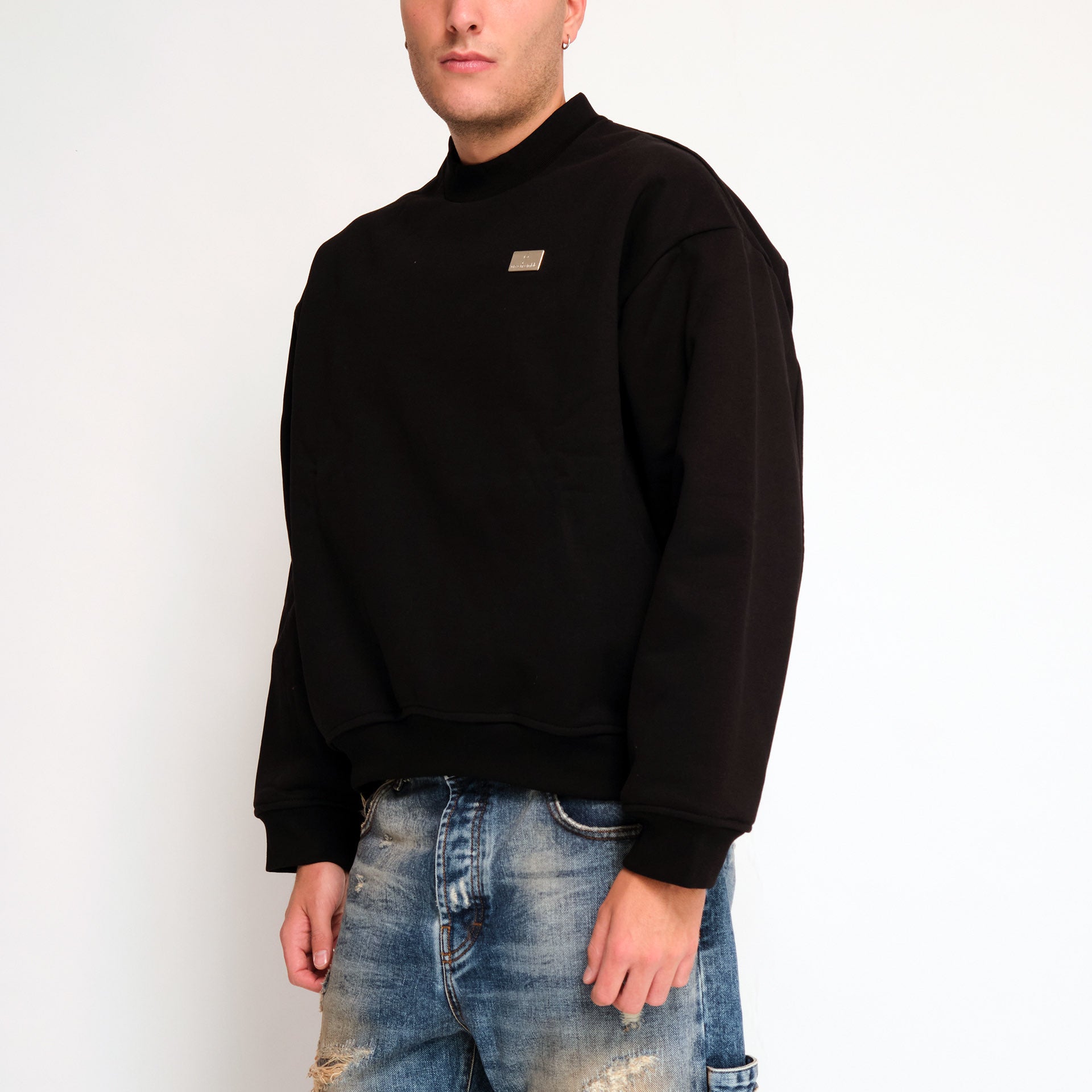 Felpa nera con etichetta Gavensemble. Vestibilità crop