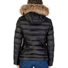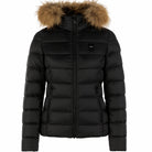 Piumino Arcadia in nylon lucido nero con fodera interna beige a contrasto. Caratterizzato da trapuntatura orizzontale, cappuccio fisso con bordo in vera pelliccia removibile e taglio che valorizza la linea della vita. Imbottito con piuma naturale 90/10 (165 g), garantisce calore e leggerezza senza ingombrare. Chiusura frontale con zip nascosta e protezione sul collo, tasche laterali con zip, tasche interne con zip e velcro e coulisse regolabile al fondo. Patch glitter e logo loop completano il design distintivo Blauer. Un piumino elegante e caldo, perfetto per la stagione invernale.