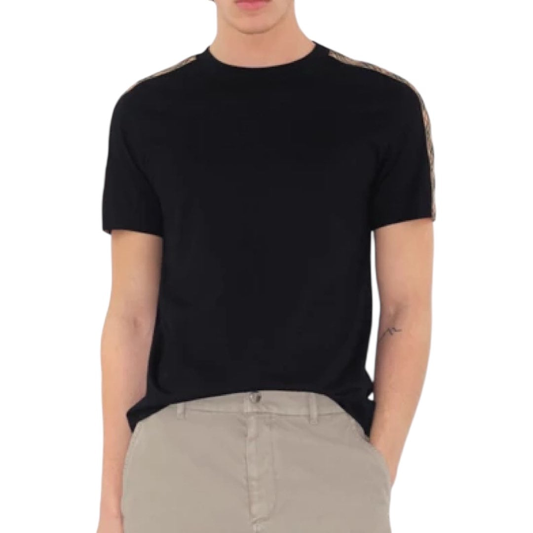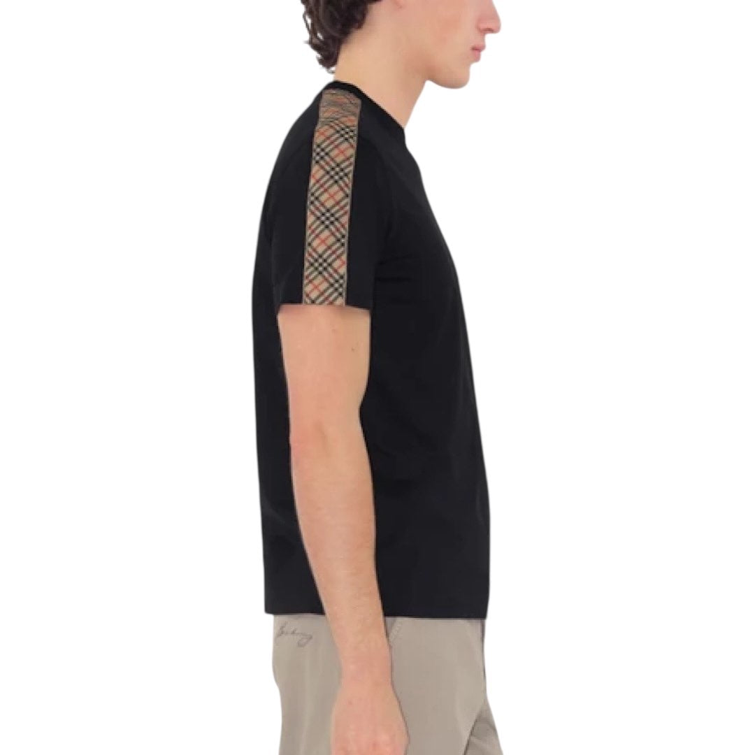 T-shirt in leggero jersey di cotone con vestibilità slim. Il capo è decorato dall'Equestrian Knight Design ricamato e da nastri in Burberry Check sulle maniche.