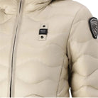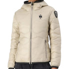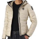 Giubbotto in nylon lucido unisce eleganza e comfort grazie al cappuccio fisso con elastico rigato e all’imbottitura in piuma 90/10 da 150 grammi, che assicura calore leggero e traspirante. La fodera a contrasto aggiunge uno stile distintivo, mentre la zip nascosta con copri cursore offre una chiusura pulita e protetta. Tasche con zip e tasca interna con velcro garantiscono sicurezza e praticità. Gli elastici rigati su fondo e polsini migliorano la vestibilità. Completano il design la patch glitterata e il passante con logo per un tocco di personalità.