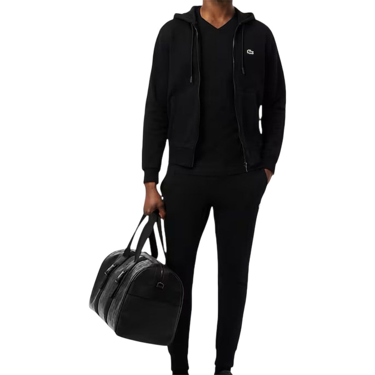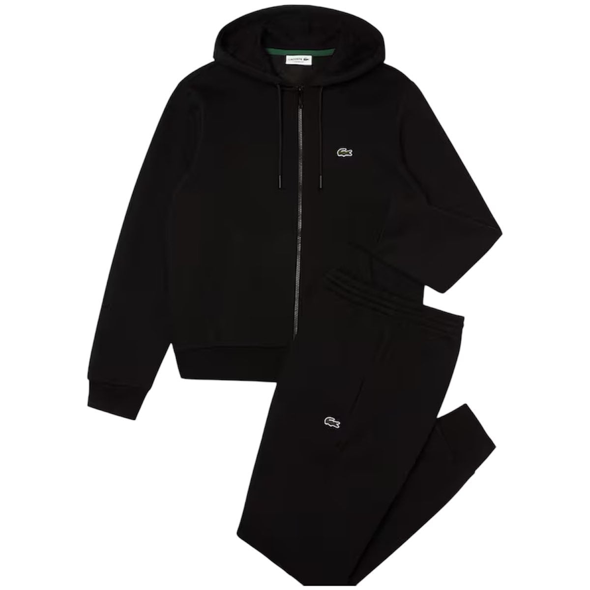 Morbido cotone organico spazzolato e poliestere riciclato Giacca dal taglio classico e confortevole Pantaloni slim fit Iconica fascia in piqué sul colletto Coccodrilli ricamati e cuciti