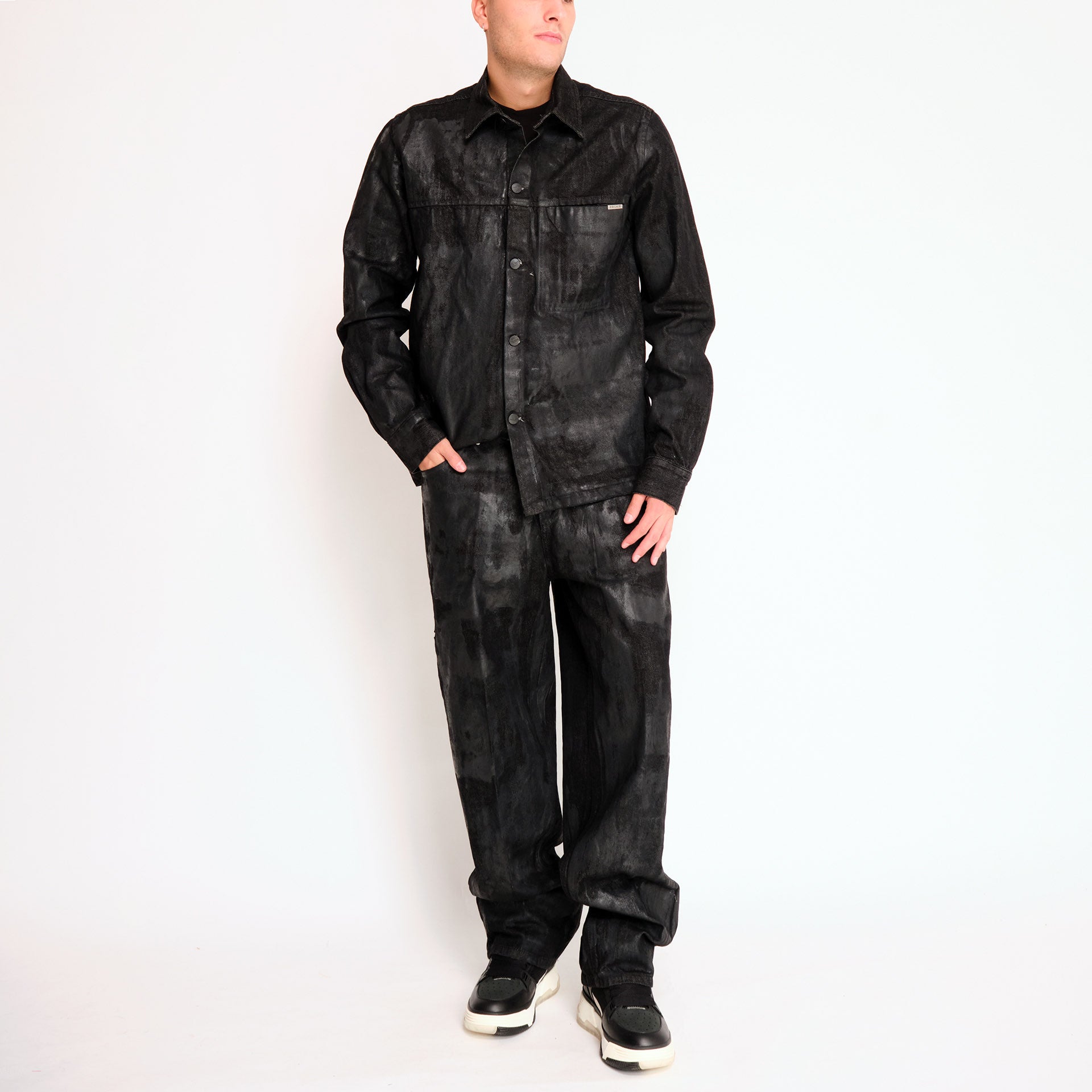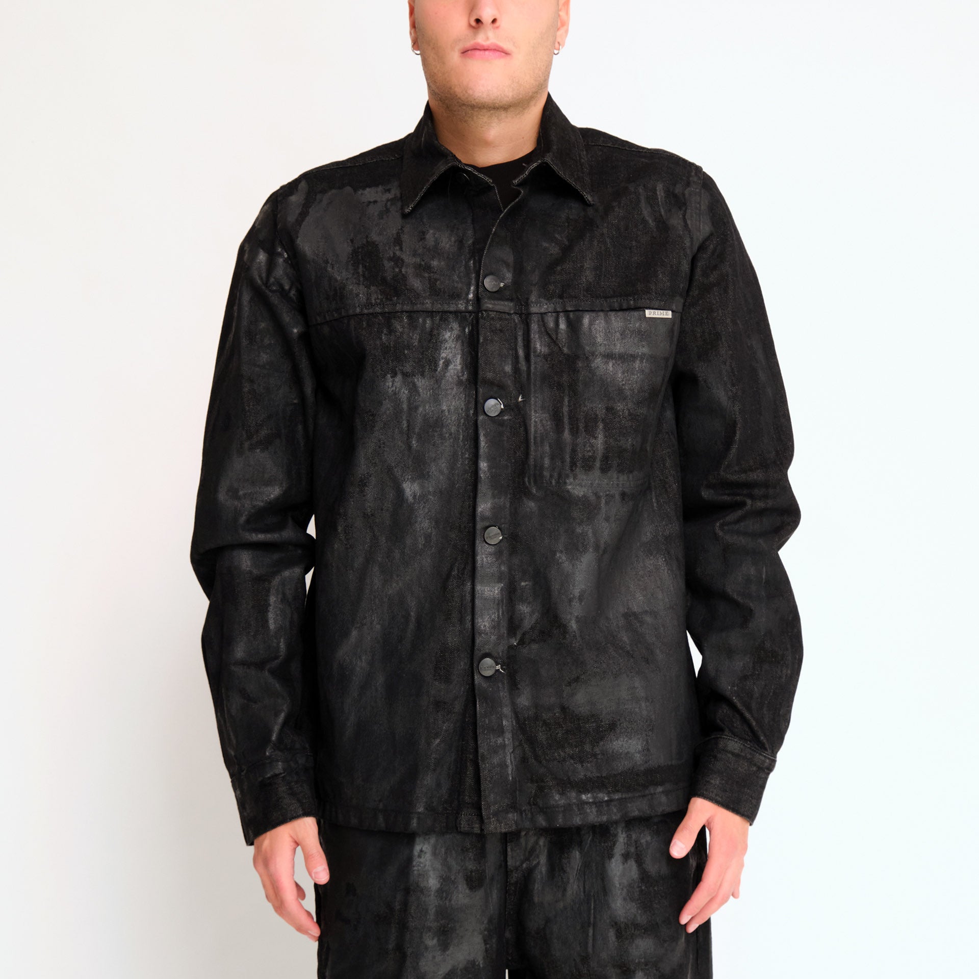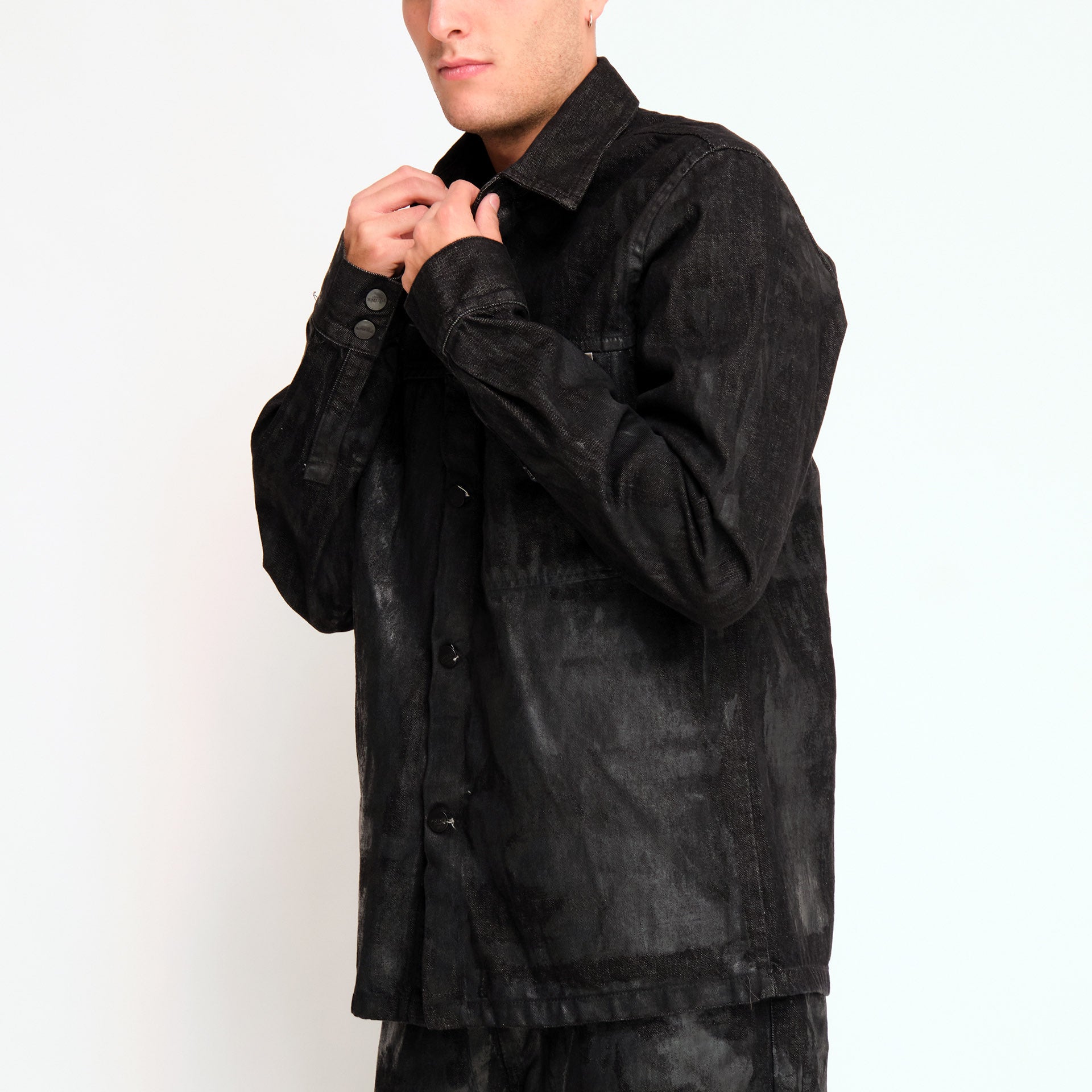 Giacca denim nero spalmato