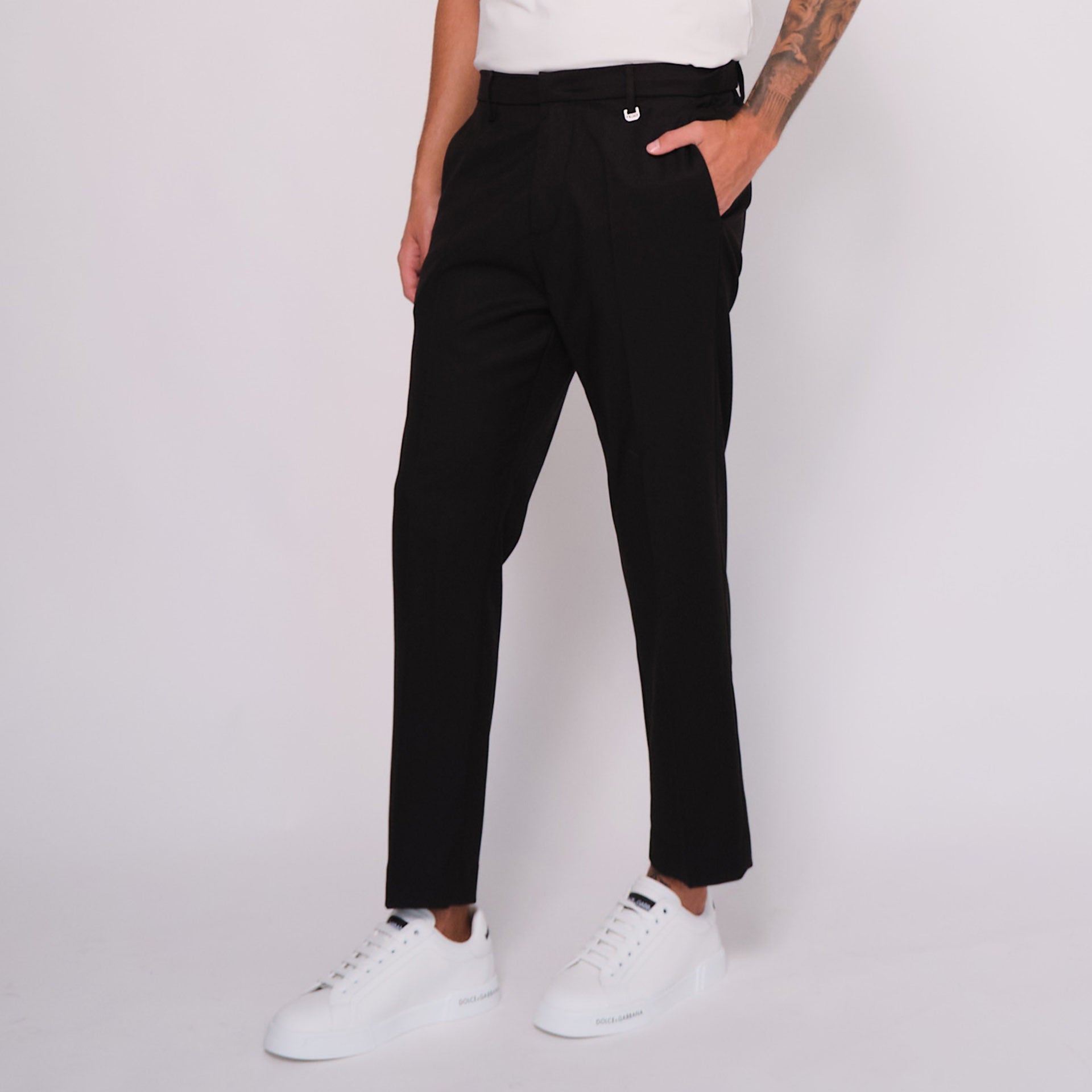 Pantalone nero con laccetto interno in poliestere e viscosa