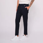 Pantalone blu con laccetto interno in poliestere e viscosa