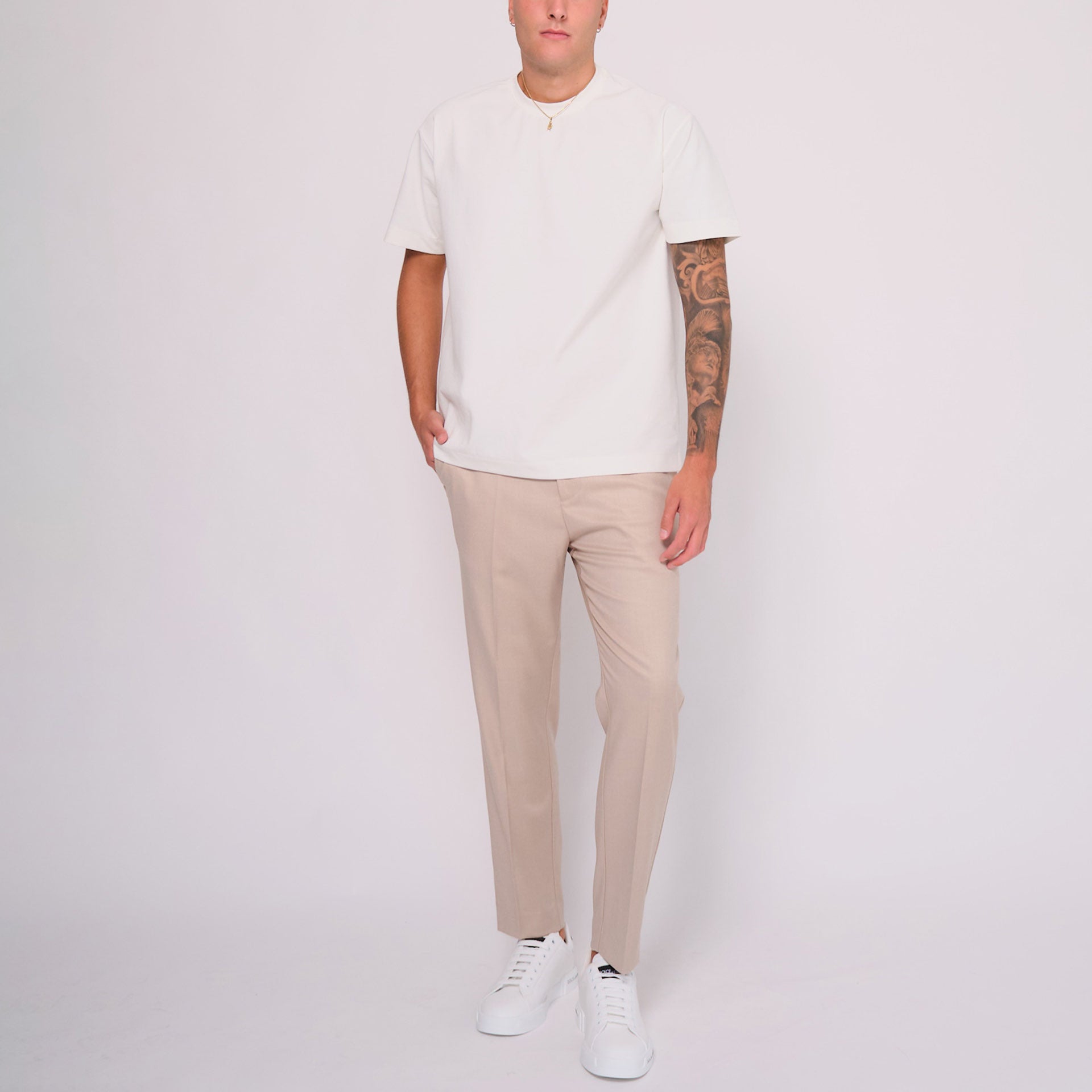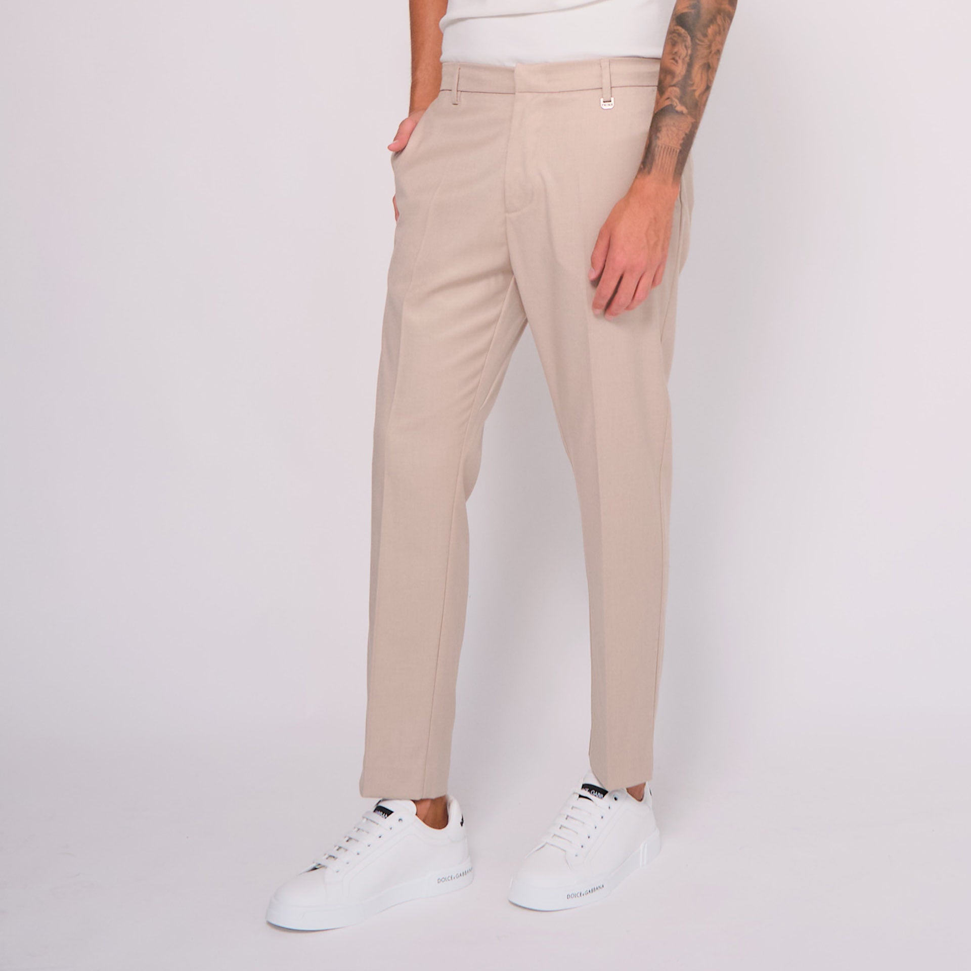 Pantalone beige con laccetto interno in poliestere e viscosa