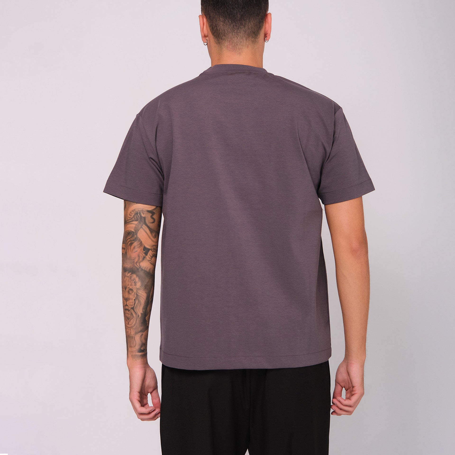 T-shirt grigio fumo in cotone e nylon.