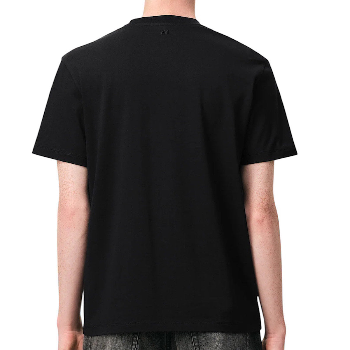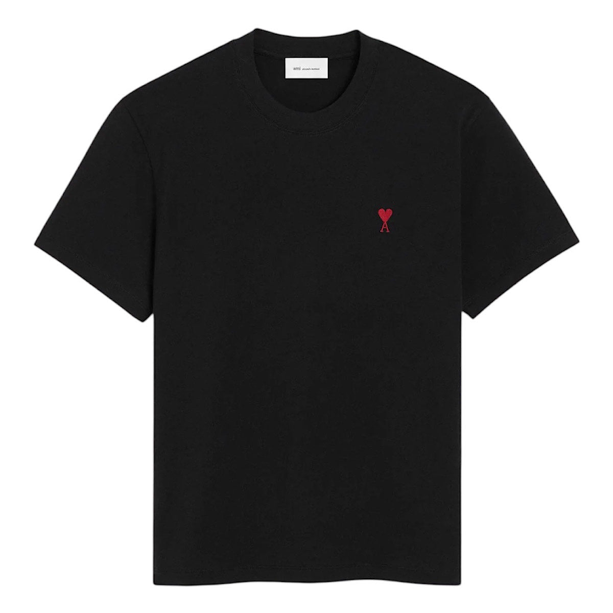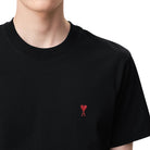 unisex nero/rosso acceso/bianco cotone biologico trama jersey caratteristico motivo con monogramma Ami de Coeur girocollo maniche con spalle scese maniche corte orlo dritto
