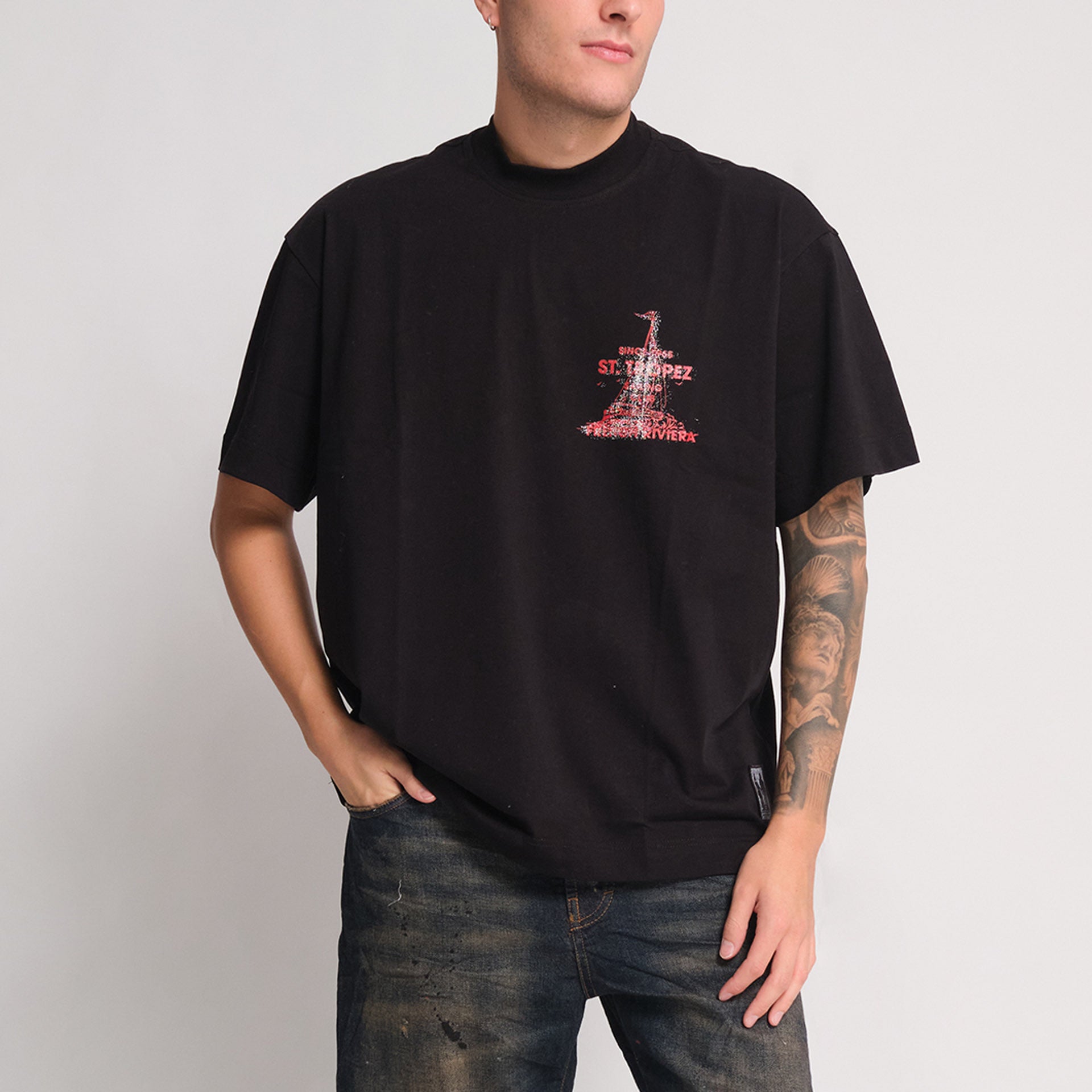 T-shirt nera con stampa. Vestibilità comoda