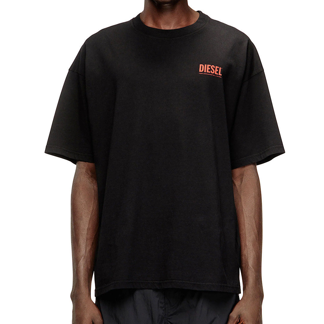 T-shirt a vestibilità rilassata con girocollo e maniche corte, realizzata in jersey di cotone biologico. Presenta una stampa Diesel For Successful Living sul petto a sinistra e un logo Diesel Biscotto extra-large stampato sul retro. Perfetta per un look iconico e ricco di DNA.