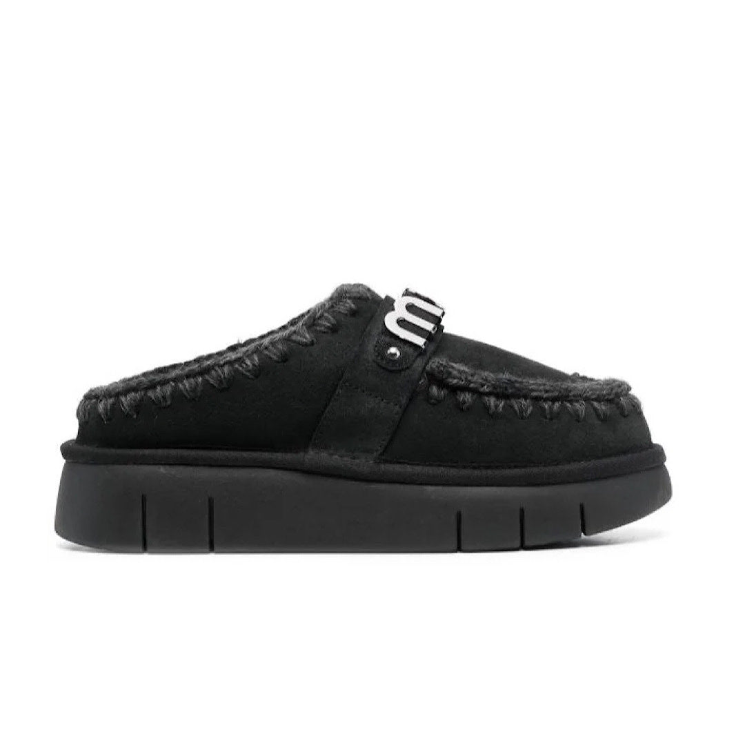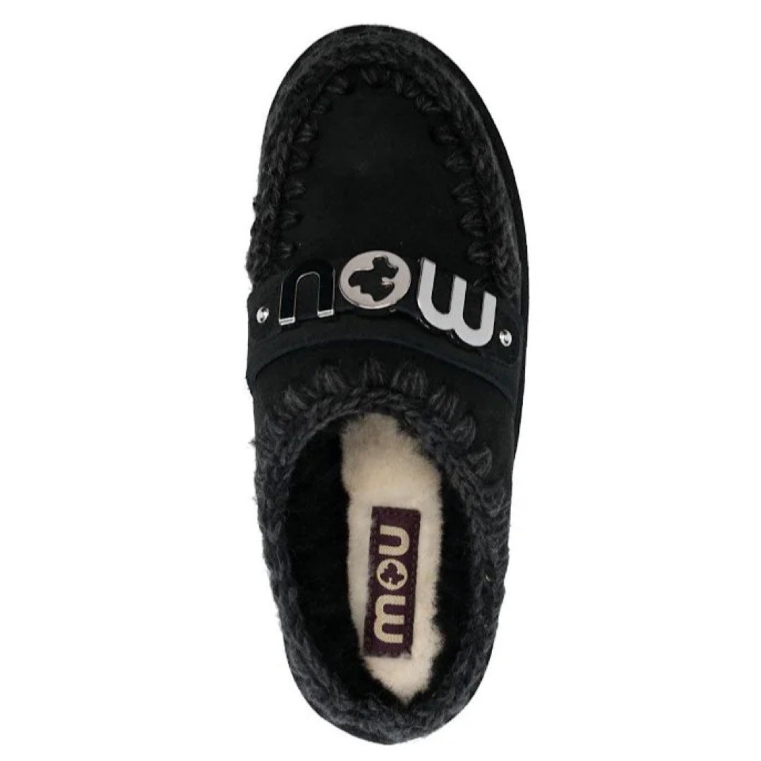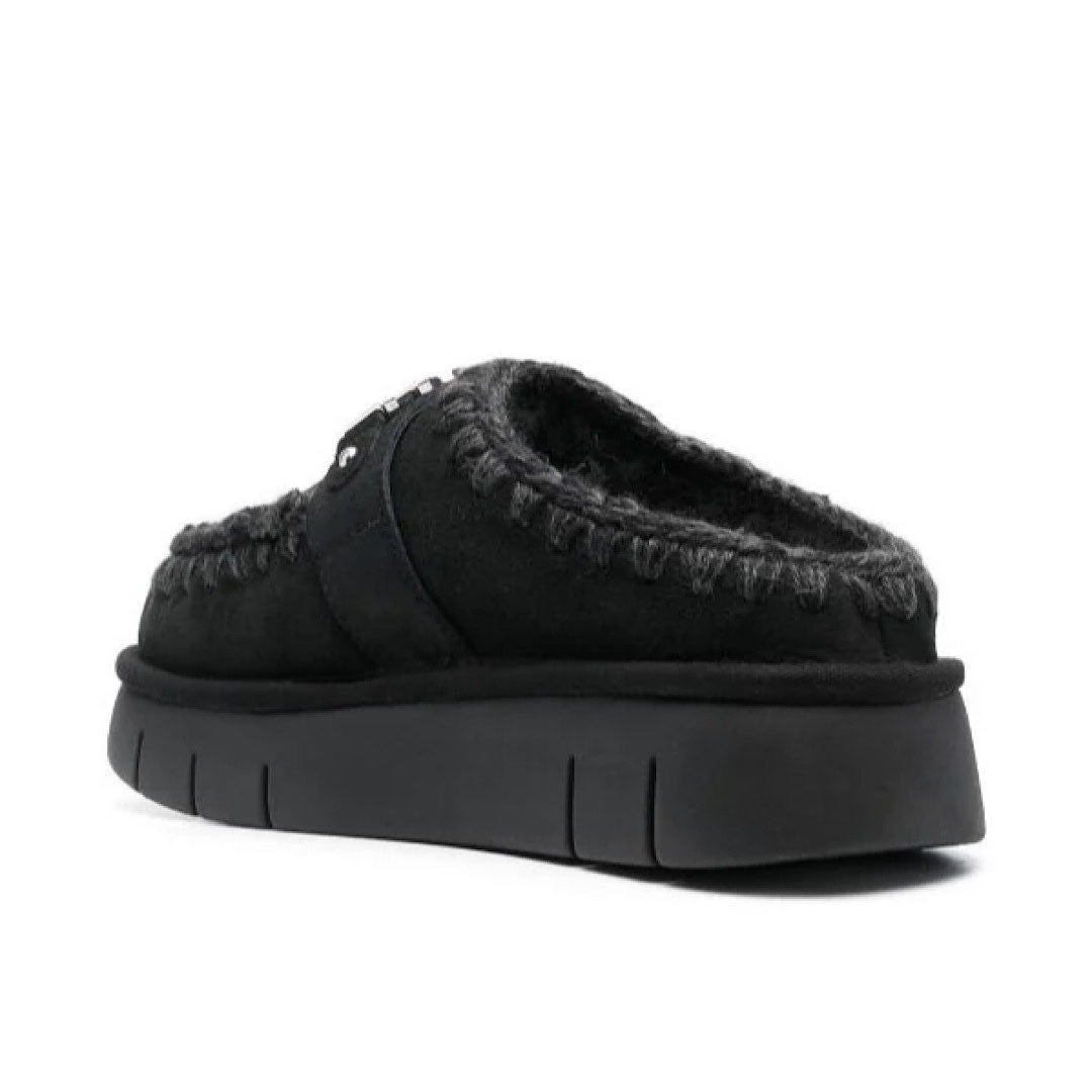 Babouche Mou modèle Bounce Clog en cuir de mouton noir.