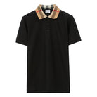 Nero, cotone, motivo a quadri, colletto a contrasto, colletto stile polo, falsatura frontale con abbottonatura, maniche corte e orlo dritto