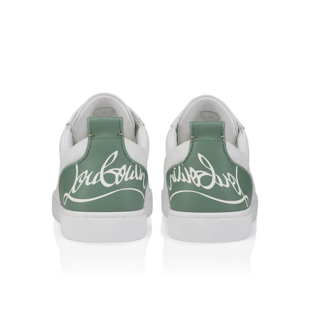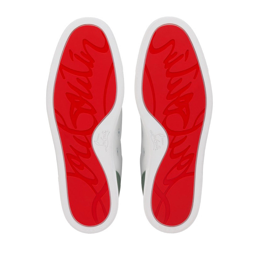 pelle di vitello bianca e presenta una struttura flessibile. Il tallone è realizzato in pelle di vitello verde Manuka impreziosita dalla firma della Maison Christian Louboutin
